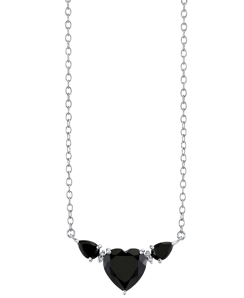 Displaying a striking contrast with heart and pear-shaped onyx stones, this Macy's necklace creates a bold, graphic design. Diamond accents set in sterling silver provide a delicate, luminous touch.