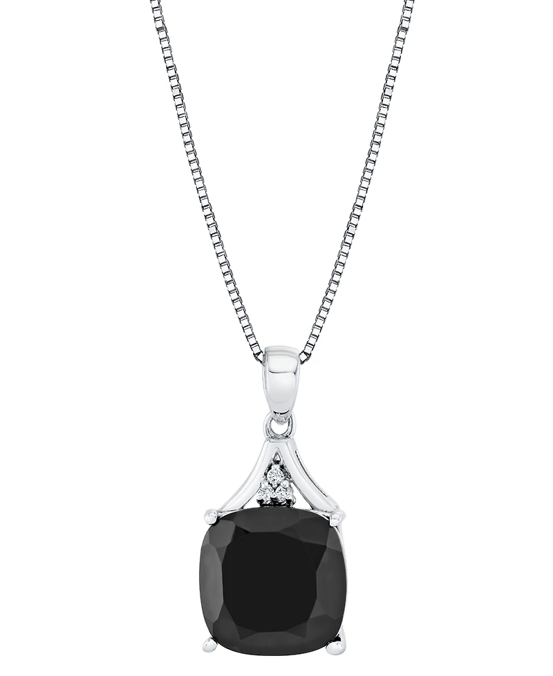 Macy's Onyx (6-1/6 ct. t.w.) and Diamond Accent Cushion Pendant Necklace in Sterling Silver