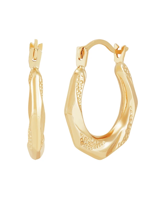 Macy's Polished Texture Hoop Earrings in 14K Yellow Gold