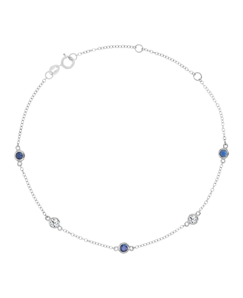 Continuous sparkle defines this Macy's bracelet, alternating blue and white sapphire stones along a sleek chain. Crafted in white gold with spring ring closure, it offers a refined, elegant shimmer.