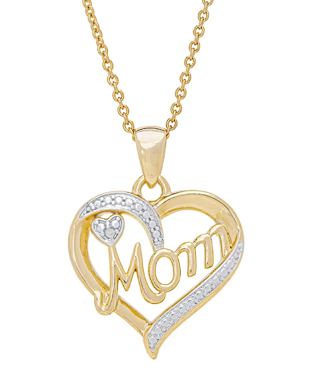 Macy's Diamond Accent Gold-plated Mom Heart Pendant Necklace