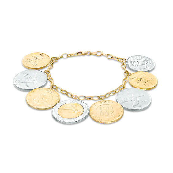 Made in Italy Bronze and Stainless Steel Lire Coins Bracelet in 14K Gold - 7.5"
