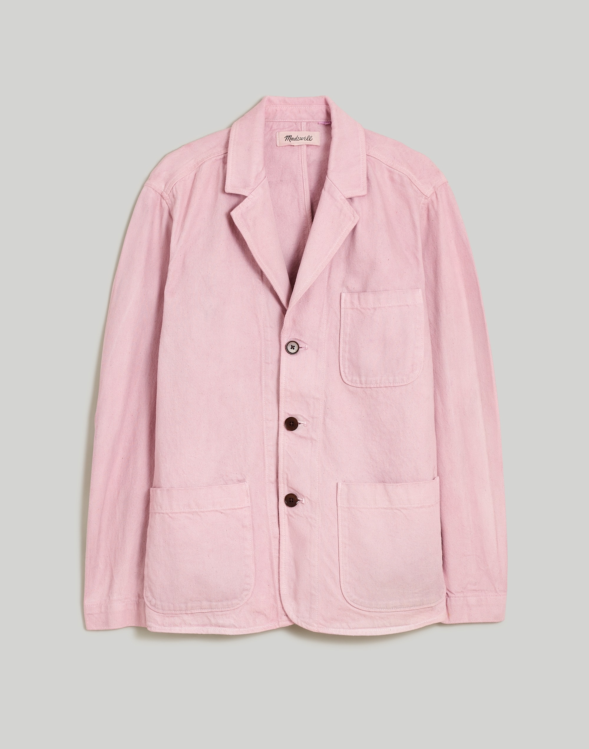 We teamed up with Catskills-based textile artist Maegan Neubeck on an exclusive premium denim capsule hand-dyed with botanicals and other natural pigments. With workwear-inspired patch pockets, this relaxed take on a chore coat gets a unique color with natural highs and lows.