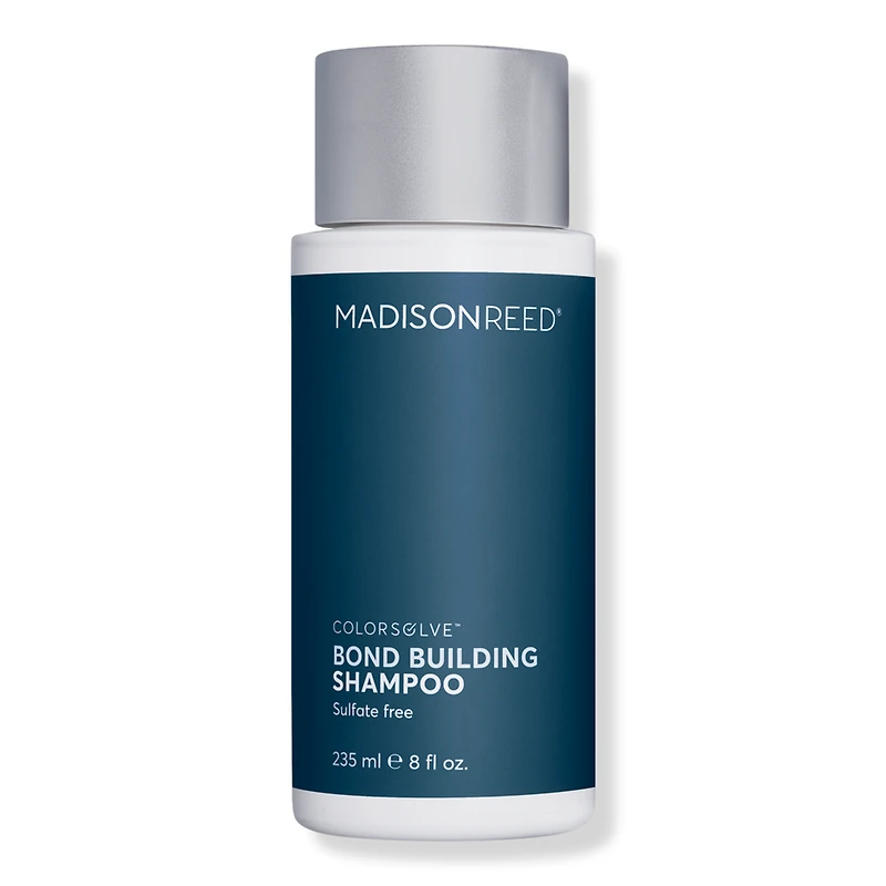 COLORSOLVE BOND BUILDING SHAMPOO 8.0OZ. Benefits: Truly customize your hair care with Madison Reed ColorSolve Hair Care System, designed to address the needs of all types + textures of color-treated hair.. Three step system: choose your shampoo + conditioner, add a Color Depositing Shot to your shampoo, shake for 45 seconds before shampooing.. Specifically designed to protect and care for color treated hair.. Contains black spruce extract to protect against the top four elements that cause hair color to fade: sun, water, heat, and harsh detergents.. Cruelty-free: not tested on animals. Sustainable packaging. Made in Italy. Key Ingredients: Black Spruce protects hair against sun, water, heat and harsh detergents. Keratin to strengthen and fortify hair, restore elasticity, and prevent breakage. Argan Oil restores shine and nourishes hair from root to tip. Ginseng Root Extract softens hair and alleviates split ends. Formulated Without: Ammonia. Parabens. Resorcinol. PPD. Phthalates. Gluten. SLS. Titanium Dioxide.