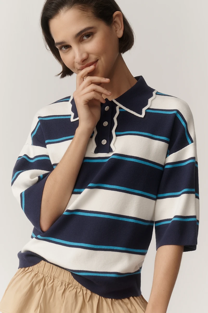 Maeve Boxy Scalloped Polo Shirt