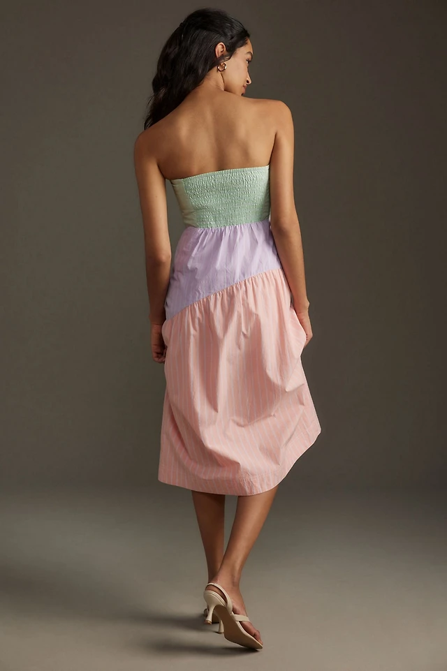 Maeve Cotton Strapless Colorblock Midi Dress