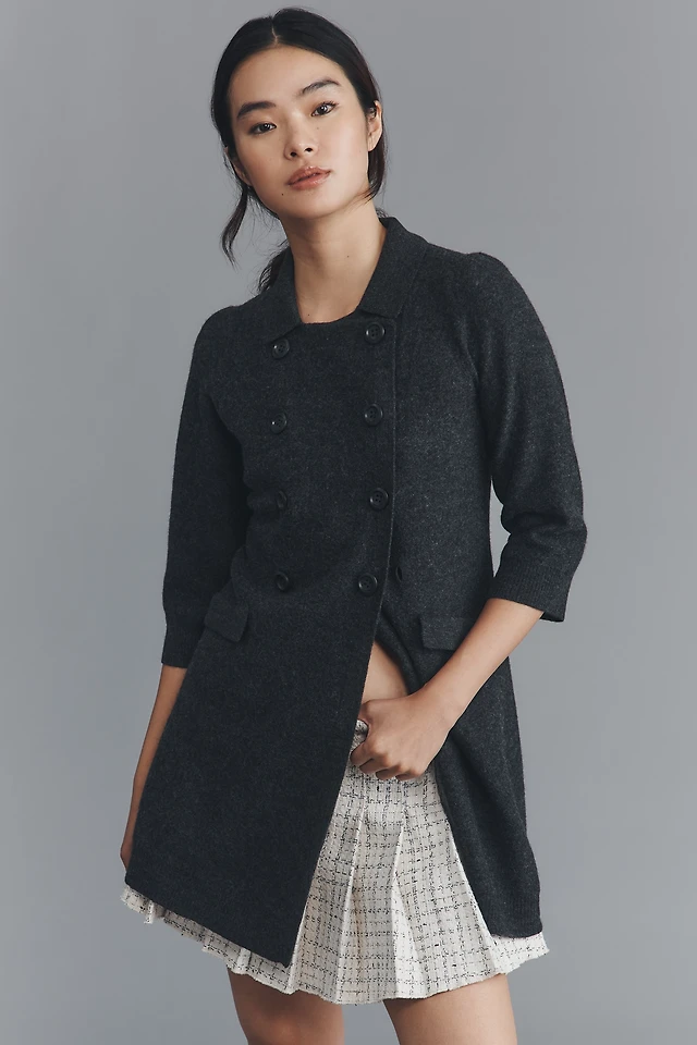 Maeve Double-Breasted Merino Wool Long Cardigan Sweater