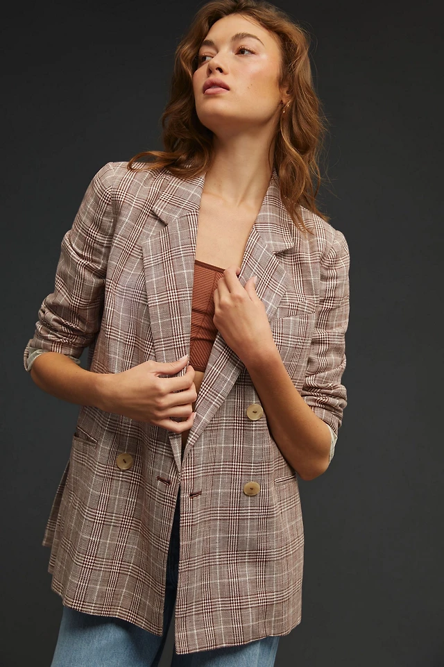 OVERSIZED PLAID DOUBLE-BREASTED BLAZER