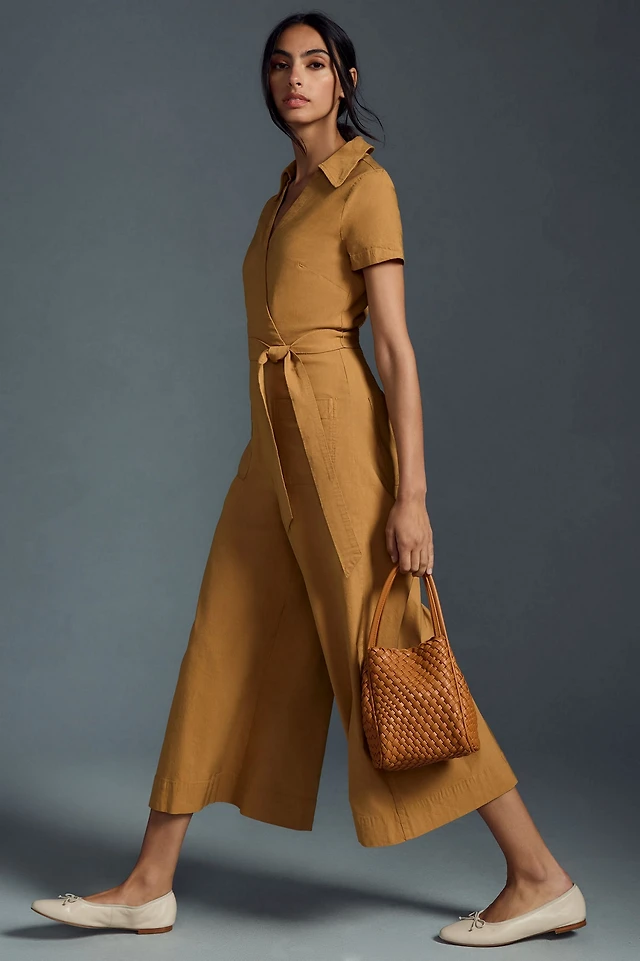 Maeve Faux-Wrap Short-Sleeve Culotte Jumpsuit