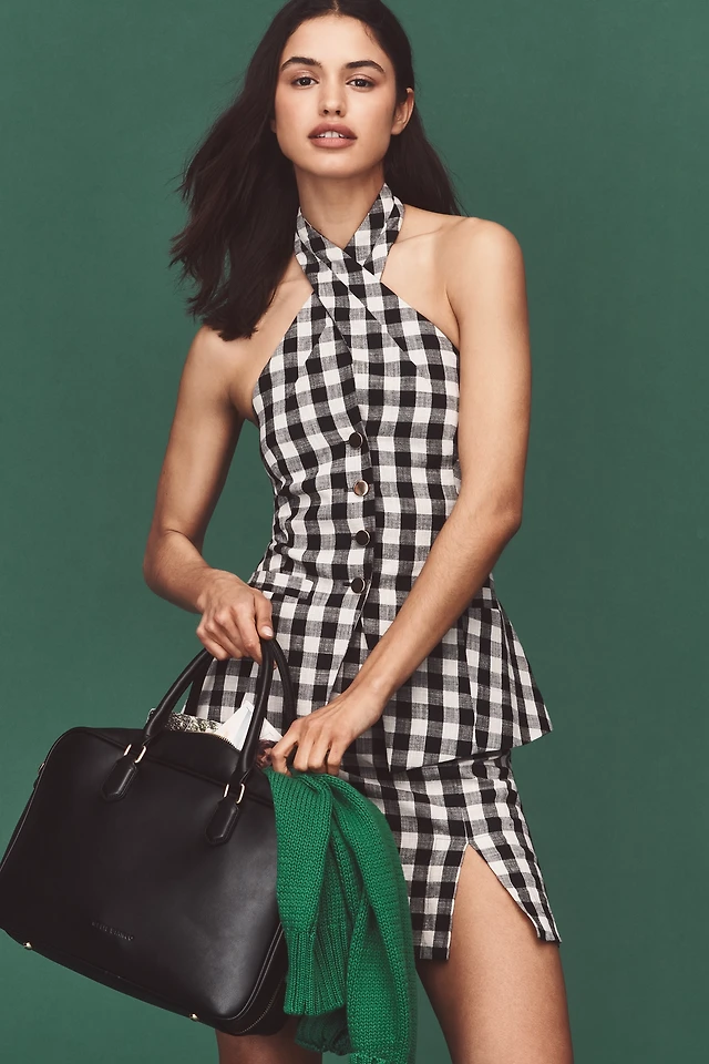 Maeve Linen Blend Gingham Halter Top