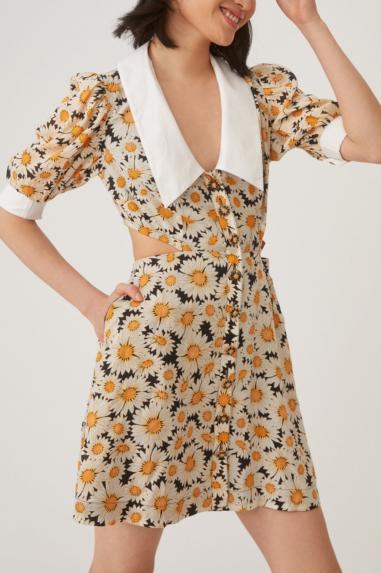Maeve Puff Sleeve Printed Cutout Mini Dress