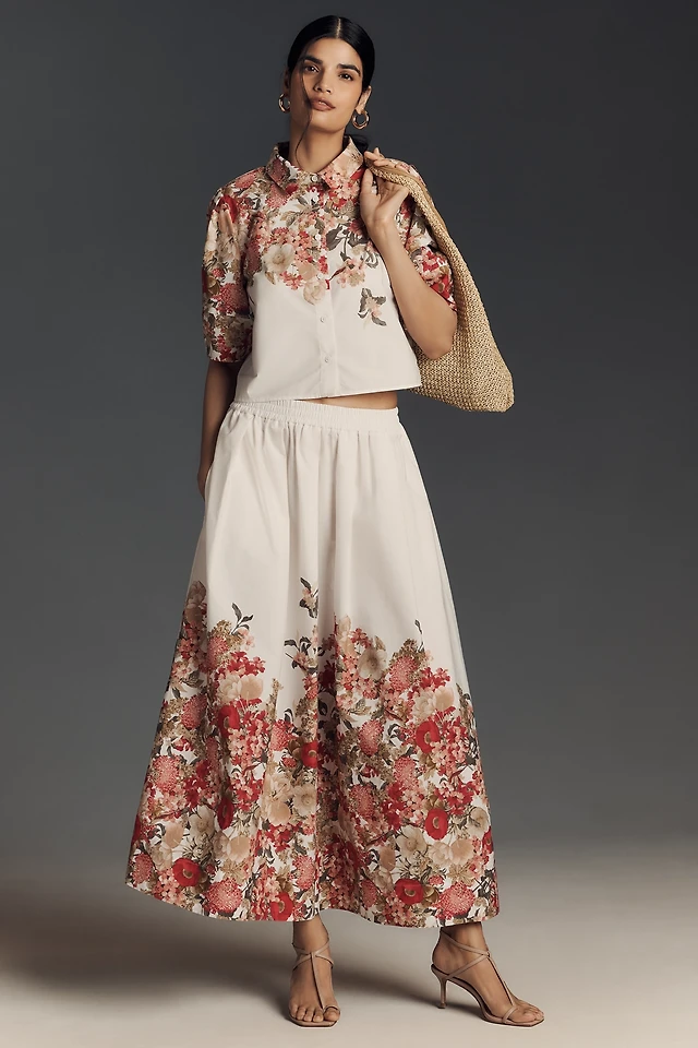 Maeve Printed Pleated A-Line Culottes