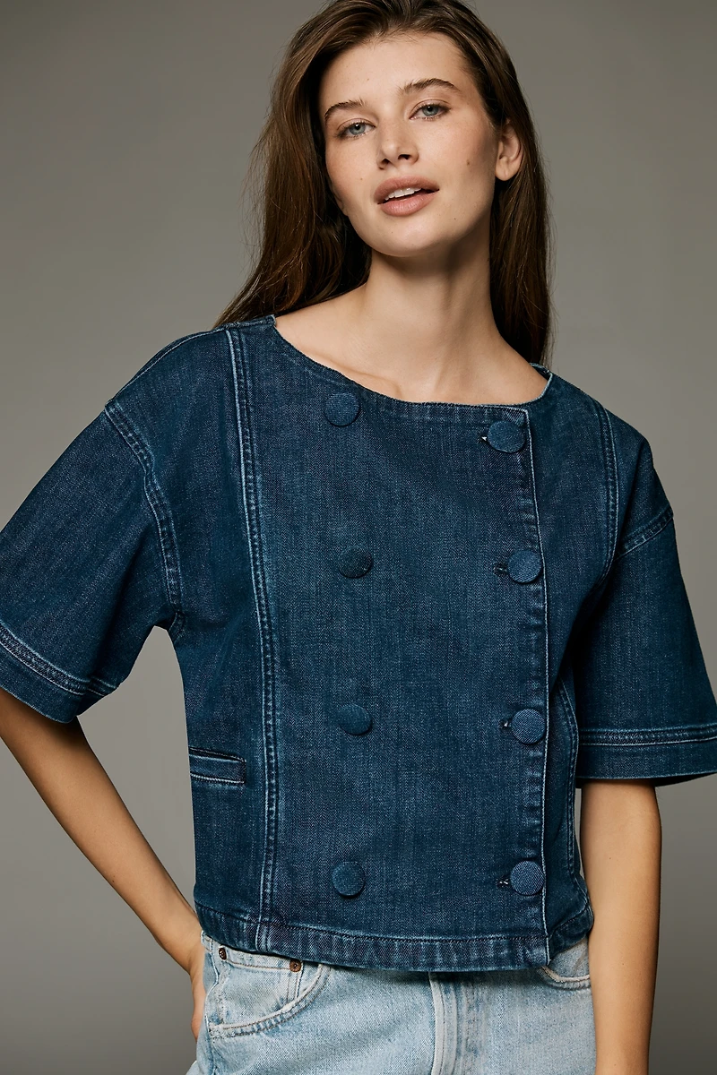 Maeve Short-Sleeve Double-Breasted Denim Jacket