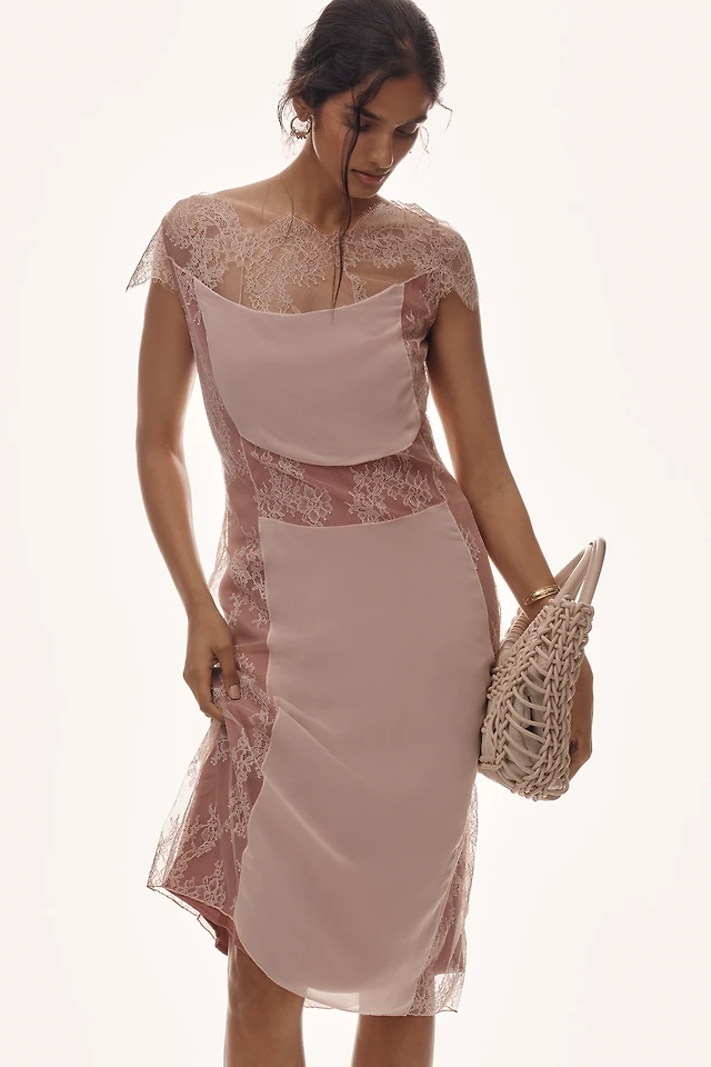 Maeve Short-Sleeve Lace Slim Knee-Length Dress