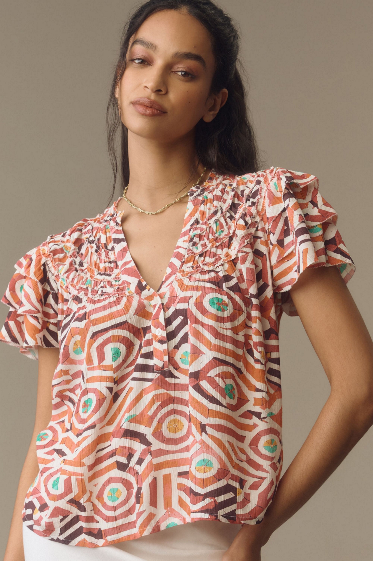 Maeve Short-Sleeve Ruffle Yoke Blouse