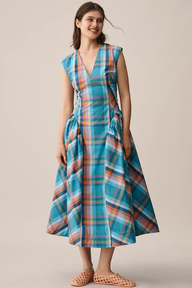Maeve Sleeveless V-Neck Basque-Waist Midi Dress