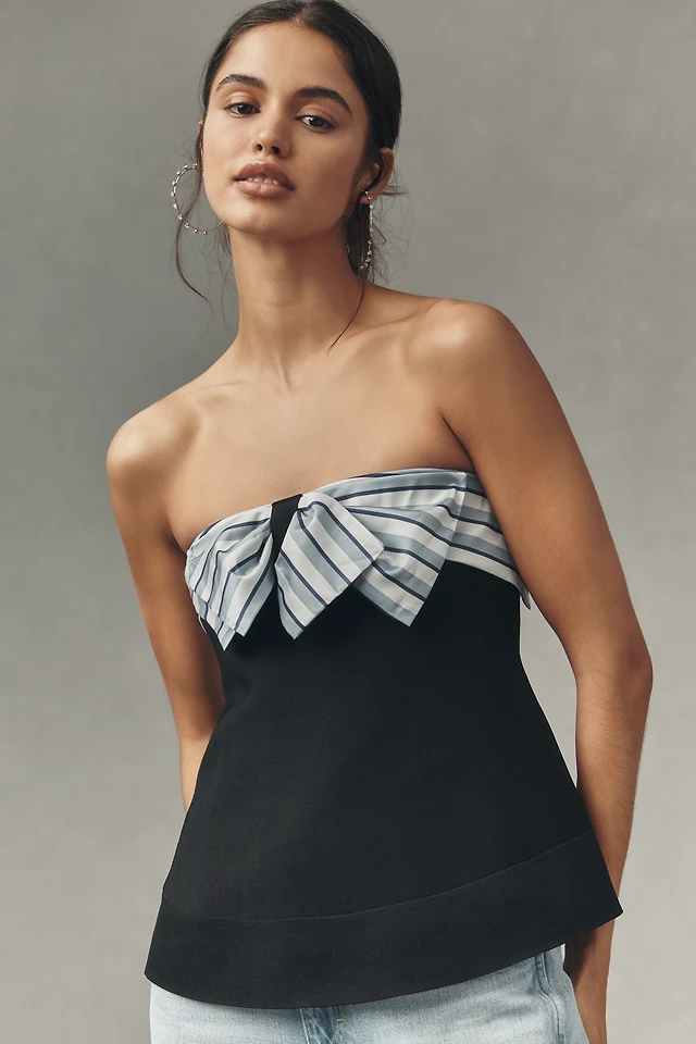By Anthropologie Suzanna Strapless Bow One-Piece Swimsuit