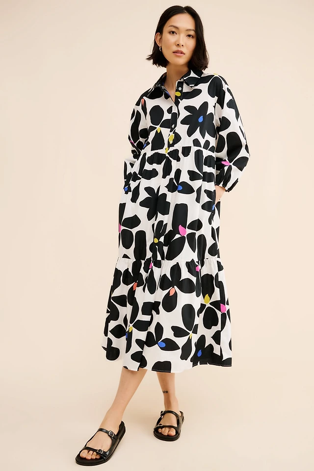 By Anthropologie Drop-Waist Midi Shirt Dress