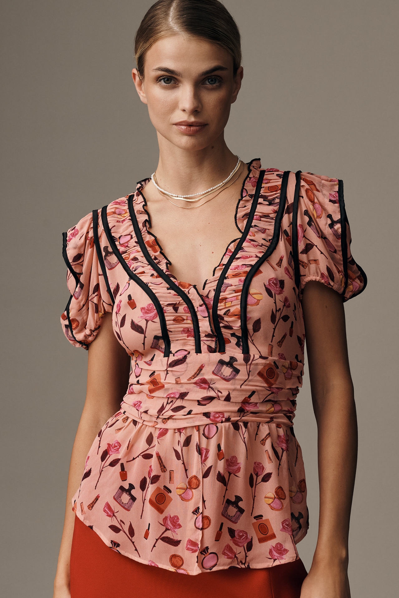 Maeve V-Neck Puff-Sleeve Printed Blouse