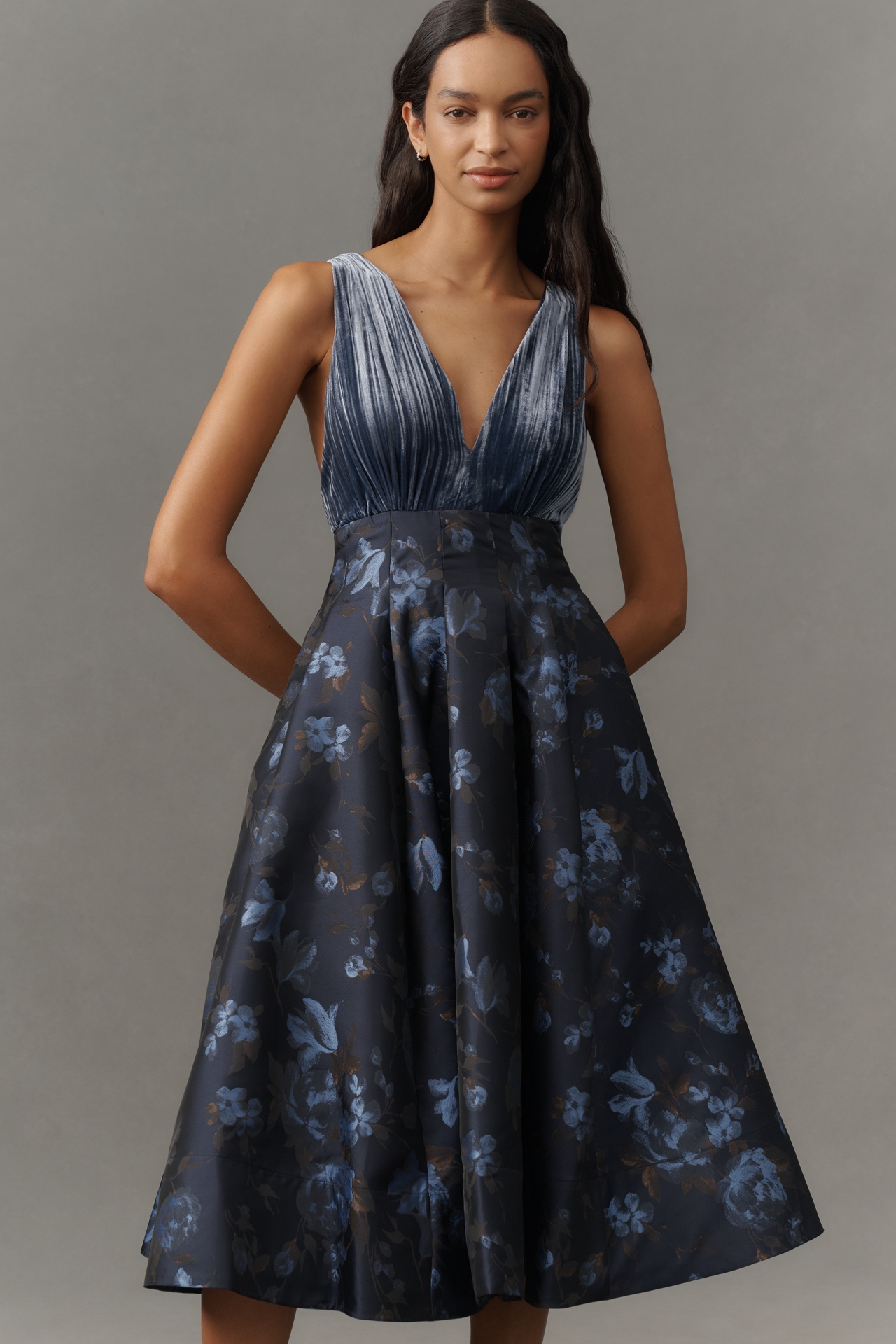 Maeve V-Neck Velvet Jacquard A-Line Midi Dress