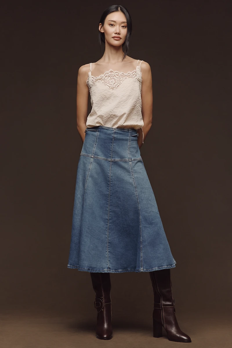 Maeve Waisted Denim Maxi Skirt in Bloomington, MN