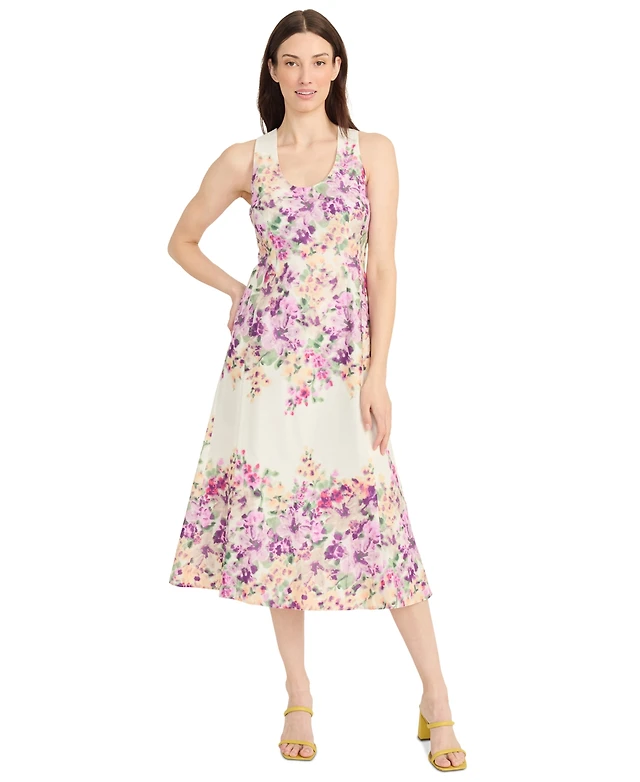 Maggy London Women's Floral-Print Cotton Midi Dress
