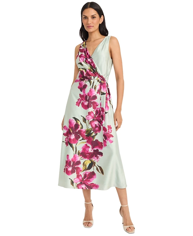 Maggy London Women's Floral Sleeveless V-Neck Midi Dress