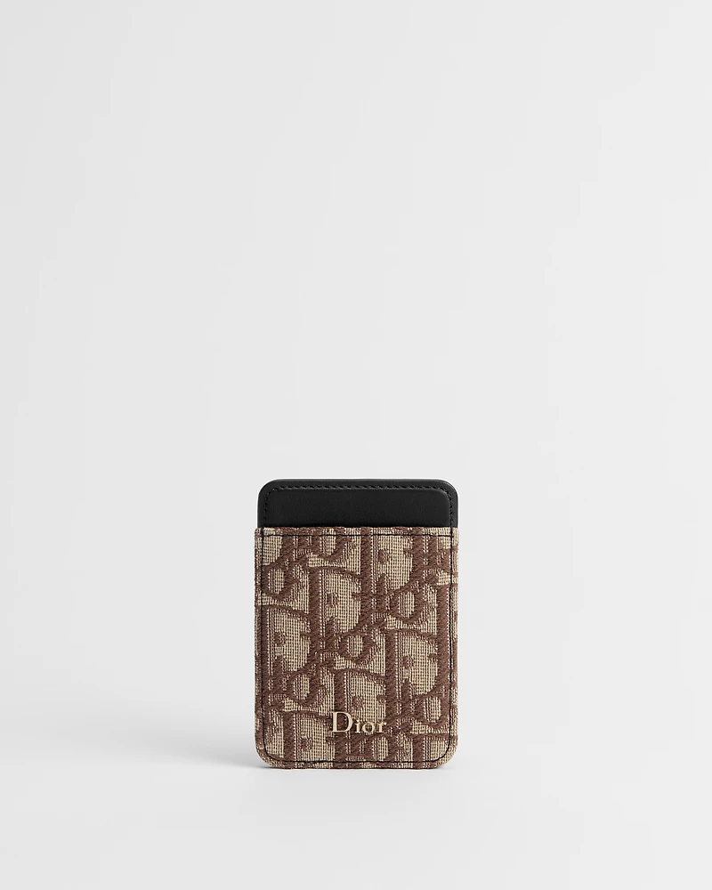 The magnetic card holder is a refined accessory that demonstrates the House's savoir-faire. Crafted in brown Dior Oblique jacquard and black smooth calfskin, it features a single card slot. Enhanced by the Dior signature on the front, the elegant card holder will pair with a MagSafe phone cover.