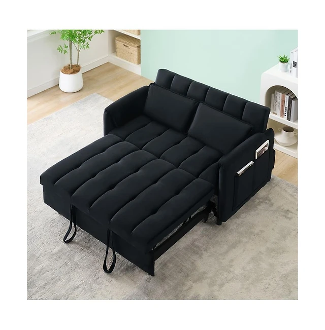 Maison Boucle 53" Pull-Out Sleeper Loveseat Sofa Bed, Convertible 3-in-1 Velvet Couch with Side Pockets & Back Support for Small Spaces-Maison Boucle