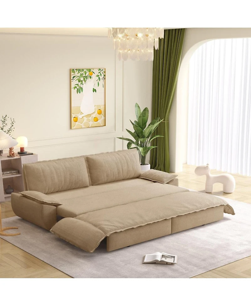 Maison Boucle Corduroy Queen Sleeper Sofa Bed with Pull-Out for Small Spaces