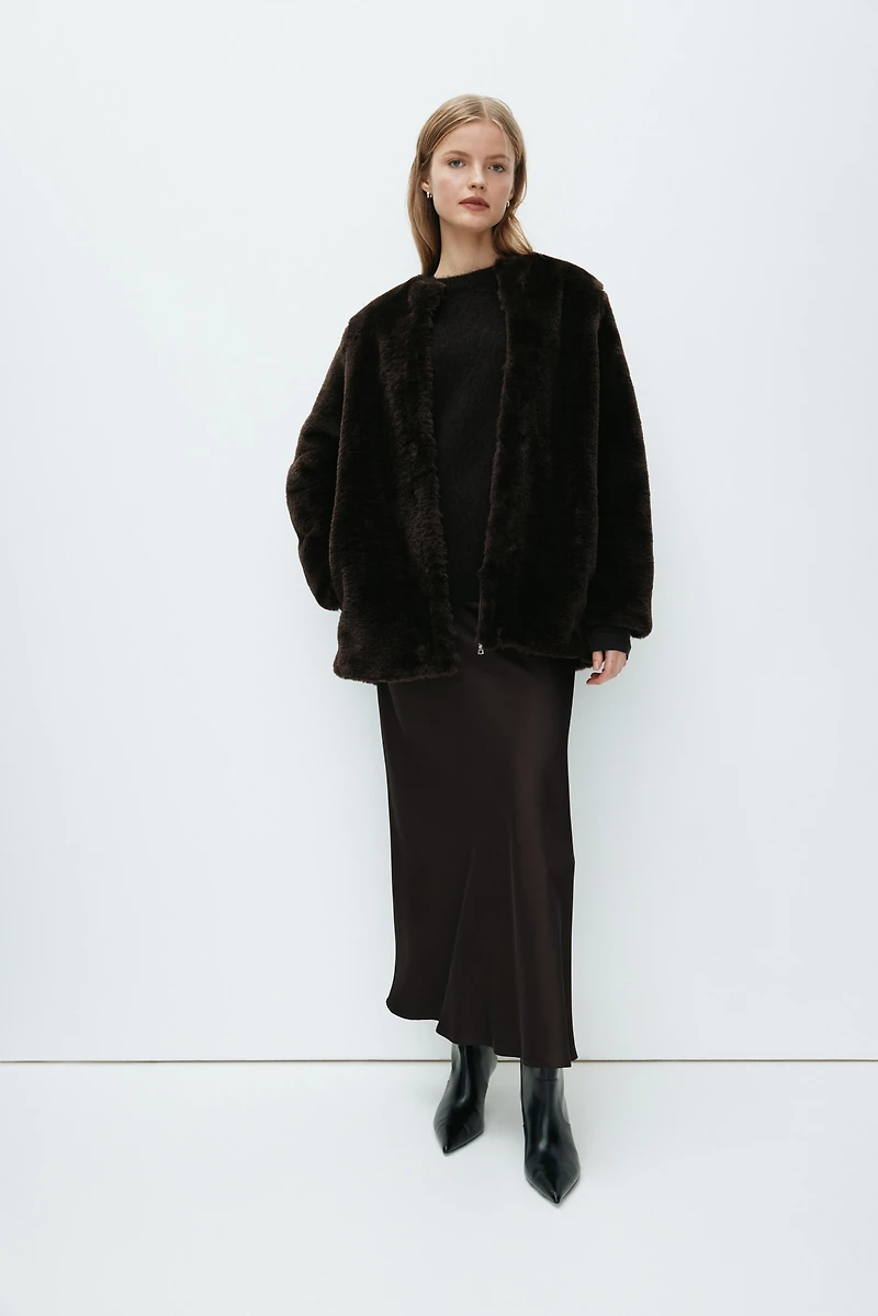 Jacket in soft, fluffy fabric designed to wear both during pregnancy and afterwards when carrying your baby. Round neckline, hook-and-eye fasteners down the front, discreet side pockets and long sleeves. Baby panel at the front fastened with an internal zip at each side. Unlined.