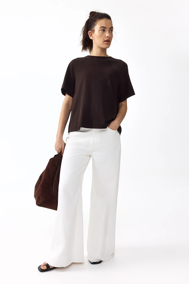 Loose-fit, crewneck nursing T-shirt in soft cotton jersey with a straight-cut hem. Elbow-length raglan sleeves with a concealed zipper along front seam for quick and easy nursing access. For wear during pregnancy and when nursing.
