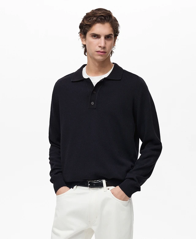 Mango Men's Openwork Cotton Knitted Polo Shirt