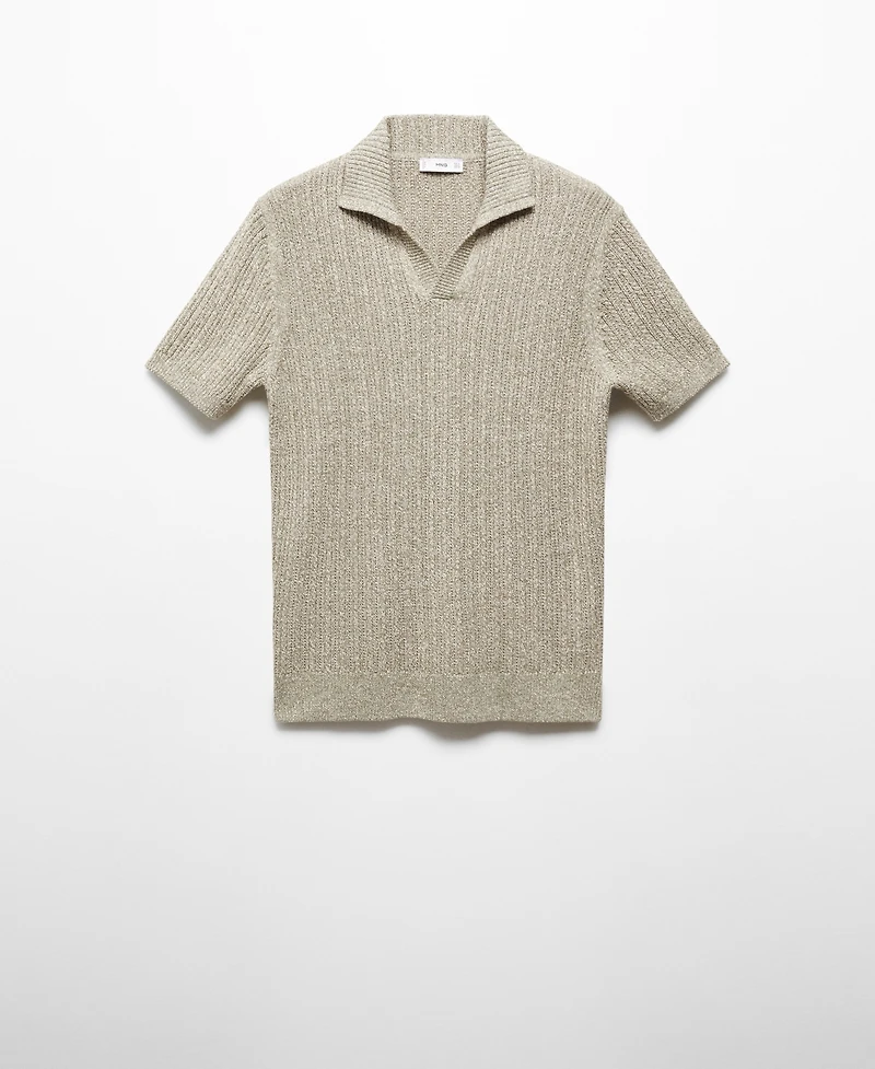 This Marbled Cotton Knit Polo Shirt from Mango is made from cotton-blend fabric and features flecked and cable knit design, polo-neck with button closure, short sleeve, and contrast ribbed finishes on collar, sleeves and bottom hem, and straight hem.