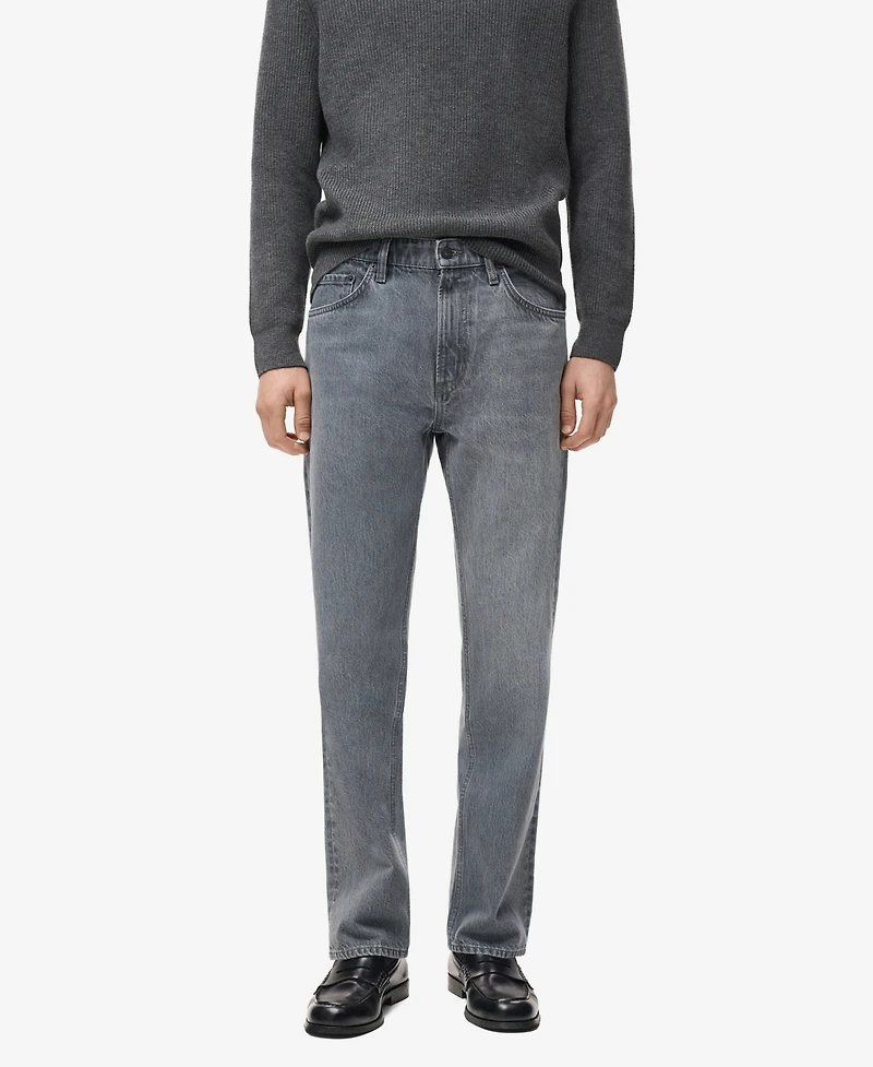 Anchor casual wardrobes with the Moby Straight-Fit Jeans from Mango. Crafted from cotton denim-style fabric, these jeans feature straight fit, front zip-button closure, front pockets, coin pocket, back patch pockets, and belt loops.