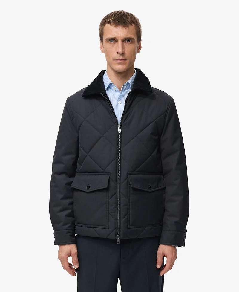 Designed for functional layering, the Quilted Water Repellent Jacket from Mango maintains structure in wet conditions. This regular fit jacket features diamond quilted structure, corduroy collar, interior pocket, front flap and button pockets, long sleeves with buttoned cuffs and zip closure.