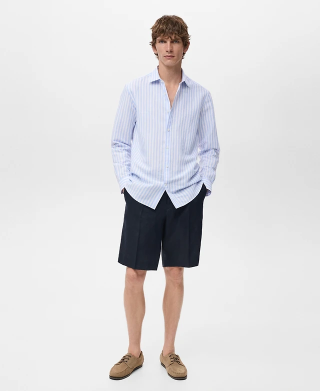 Mango Men's Regular-Fit Striped Cotton-Linen Shirt