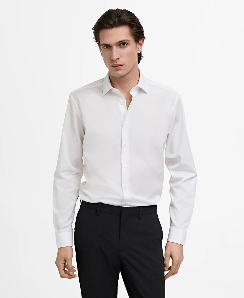 Look sharp in the Slim-Fit Cotton Poplin Suit Shirt from Mango. This Slim-Fit shirt features easy iron finish, long sleeves with buttoned cuffs, front button fastening and rounded base.