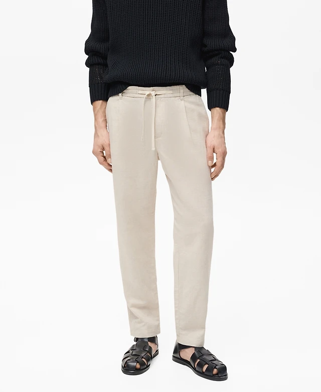 Mango Men's Slim-Fit Linen-Blend Drawstring Pants
