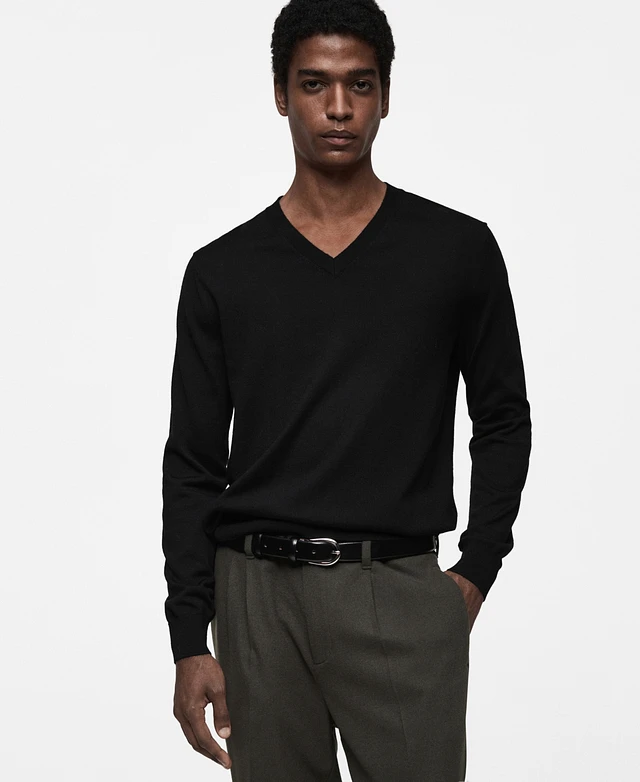 Mango Men's Slim-Fit Merino Wool V-Neck Sweater