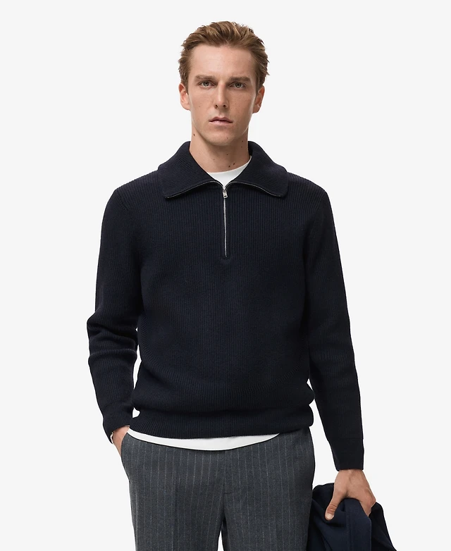 Mango Men's Zipper Collar Microstructure Sweater