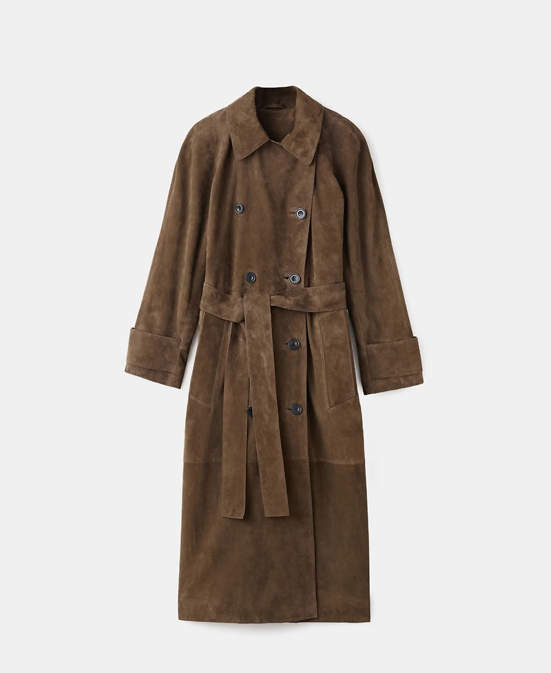 Mango Women's 100% Suede Double-Breasted Trench Coat