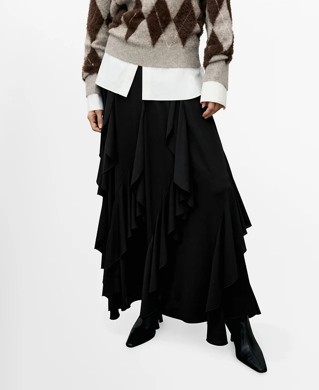 Mango Women's Asymmetrical Ruffled Skirt