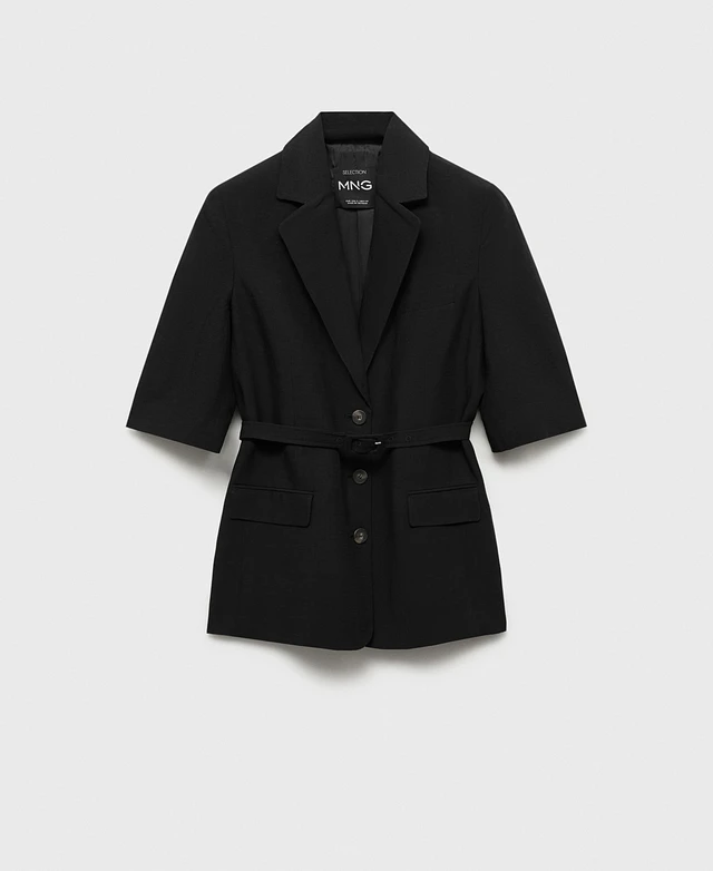 Mango Women's Belted Linen-Blend Suit Jacket