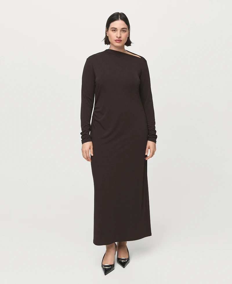 Embrace timeless style in Boat-Neck Ruched Dress from Mango. This short dress features boat neck, long sleeves, ruching, and side pleats. With a history spanning four decades, Mango is one of Europe's leading fashion brands. From Barcelona, on the banks of the Mediterranean, they delight the world with their fashion proposal and lifestyle. Mango's creative team works every day to translate fashion trends into their own language, which they deliver to customers in a personalized way while paying attention to detail.
