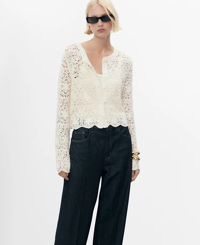 Mango Women's Short-Sleeved Crochet Cardigan