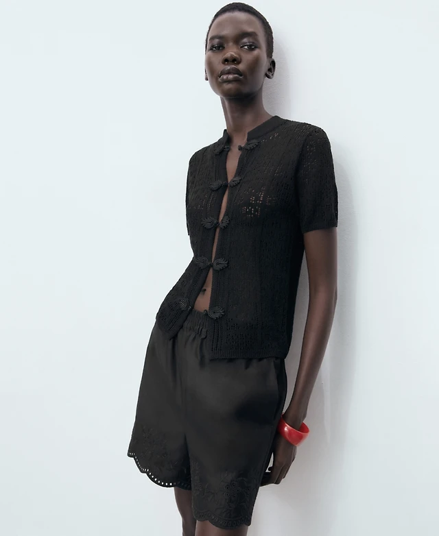 Mango Women's Short-Sleeved Crochet Cardigan