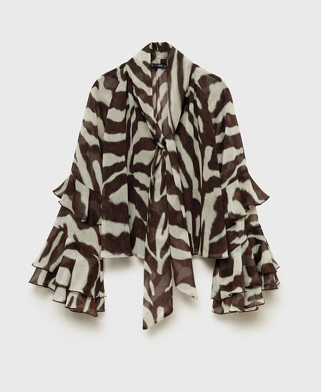 Mango Women's Ruffles Printed Blouse