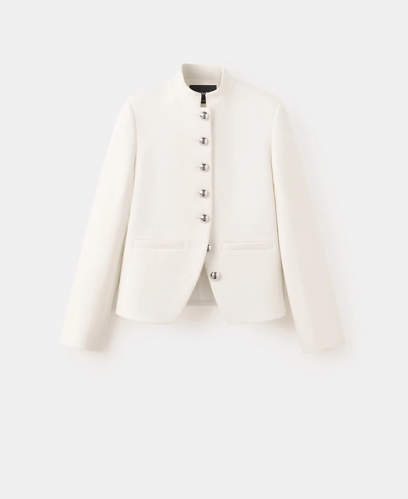 Refine occasion layering with Jacket With Jewel Button Strip Collar from Mango. Crafted from structured fabric, the jacket features straight cut, stand-up collar, long sleeves with buttoned cuffs, front button fastening, two welt pockets and inner lining. With a history spanning four decades, Mango is one of Europe's leading fashion brands. From Barcelona, on the banks of the Mediterranean, they delight the world with their fashion proposal and lifestyle. Mango's creative team works every day to translate fashion trends into their own language, which they deliver to customers in a personalized way while paying attention to detail.