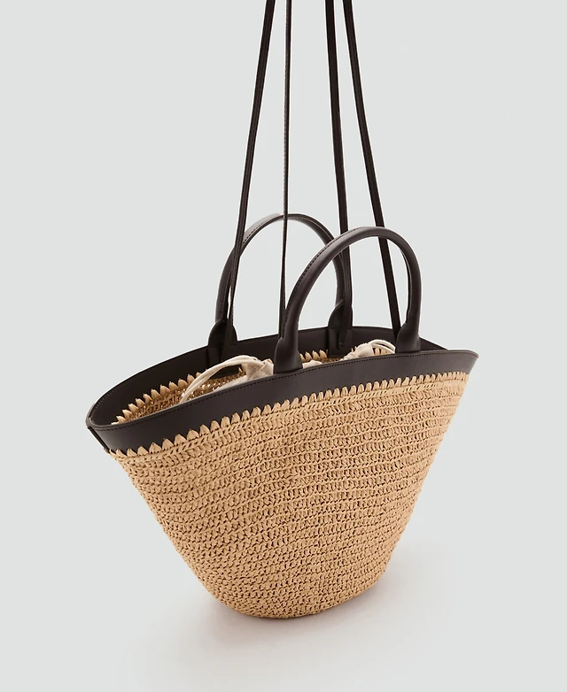 Mango Women's Fringes Detail Large Leather Shoulder Bag